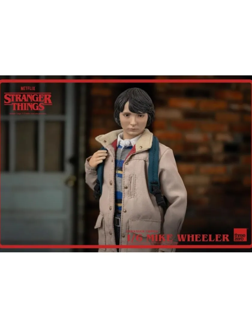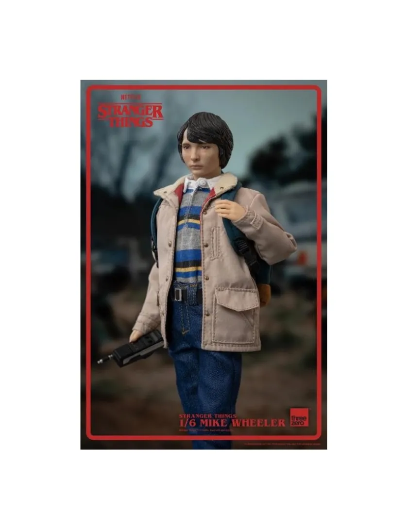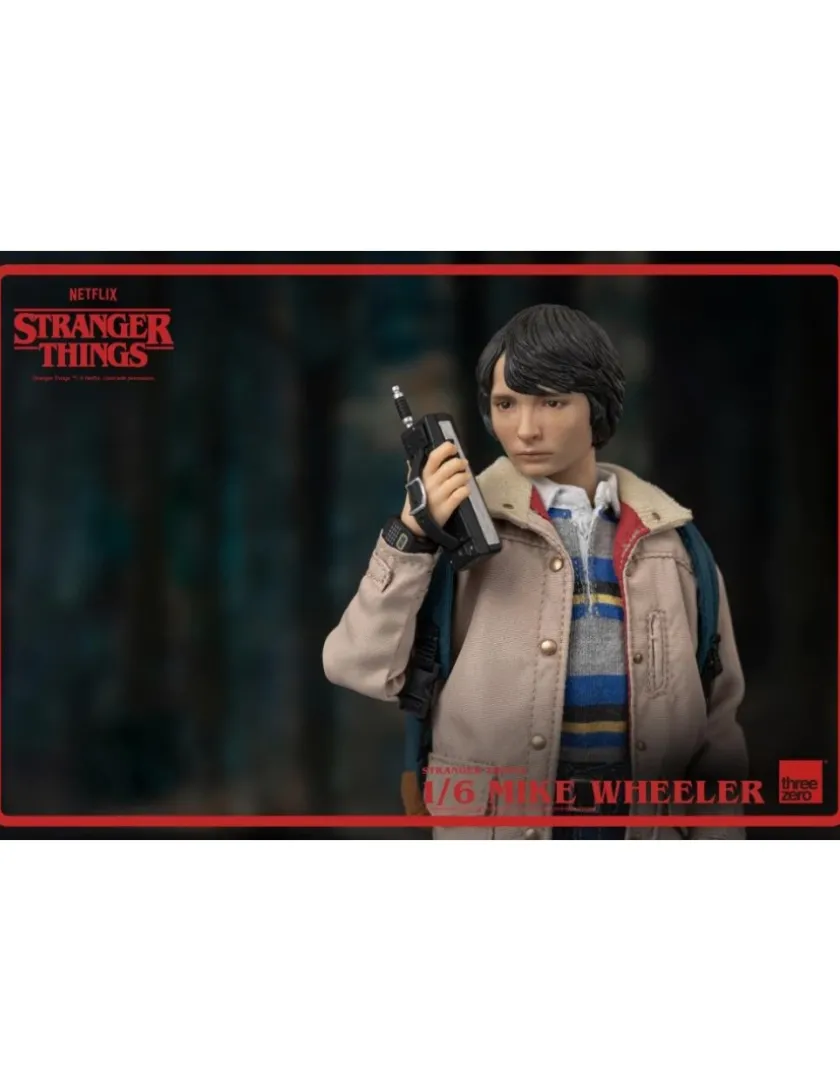 Mike Wheeler tratto da Stranger Things entra nella line-up Threezero, azione completa alto 24.5cm. Viene fornito con 8 mani intercambiabili, walkie-talkie, orologio da polso, zaino e vestiti in tessuto.