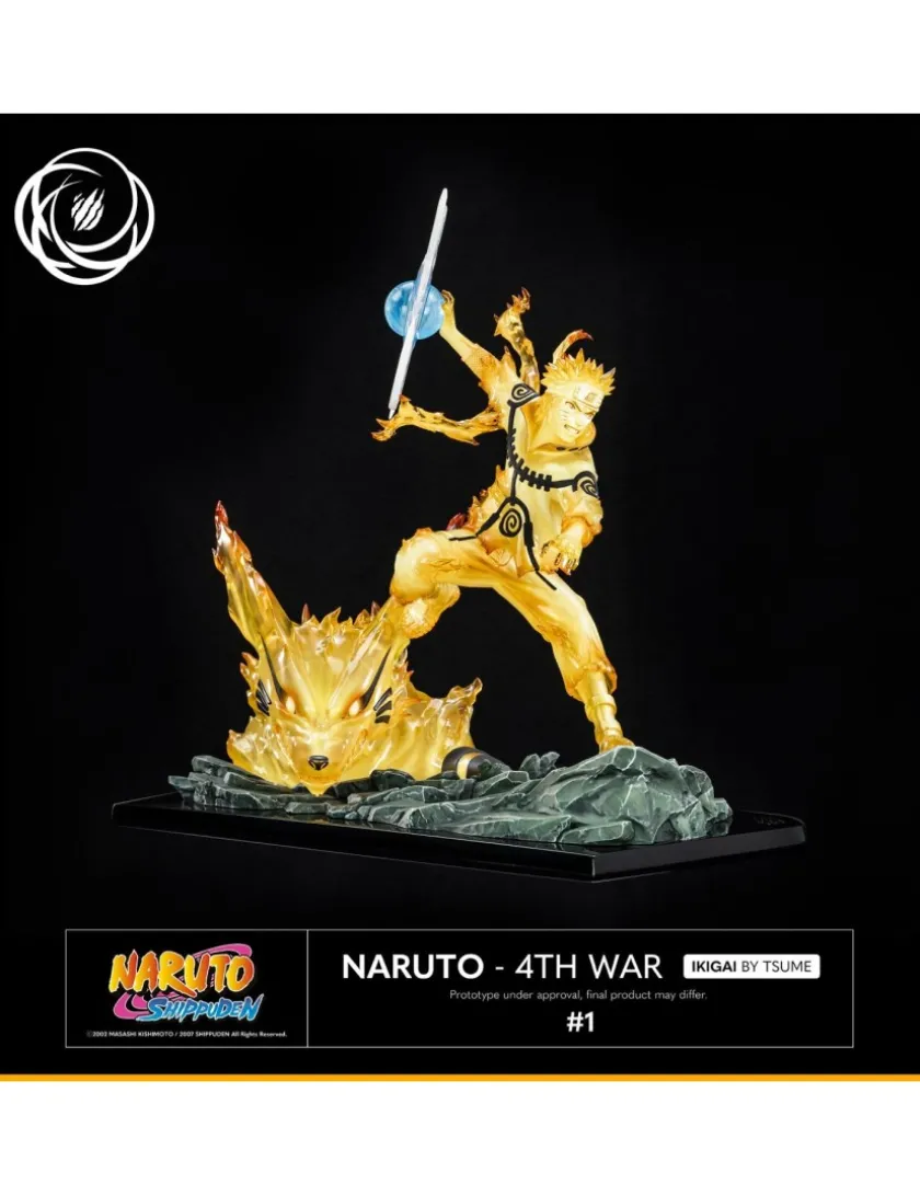 In slancio verso Obito, che è diventato invulnerabile come contenitore del Juubi, vediamo qui Naruto che combina il suo attacco Futon Rasen Shuriken con l’Enton Kagutsuchi di Sasuke, determinati ad annientare insieme il loro nemico. In posa ultra dinamica, utilizza la modalità Chakra di Kyuubi rappresentata grazie ai simboli caratteristici del suo vestito e alle sfumature infuocate del chakra. Con la mano destra prepara il suo attacco Wind Element che ha creato dopo aver compreso i principi del Futon fondendolo con il suo Rasengan. Il paesaggio roccioso della base ci riporta al campo di battaglia della 4a Grande Guerra Ninja, mentre la testa del Bijuu Kyuubi simboleggia la sua connessione con Naruto e il potere condividono insieme.